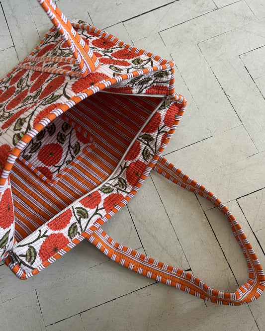 Sold outQuilted Orange Print Tote Bag