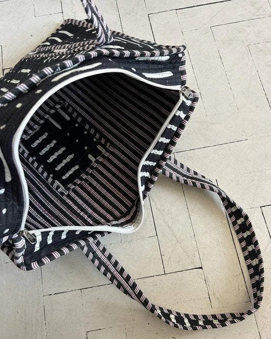 Quilted Black Printed Tote Bag